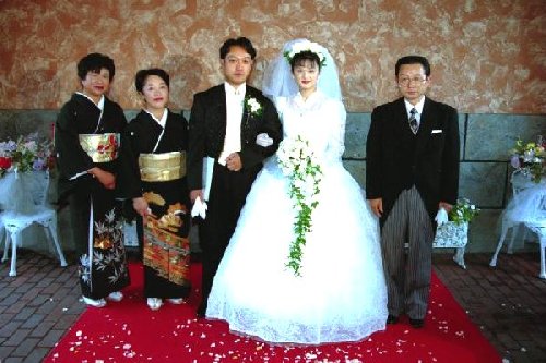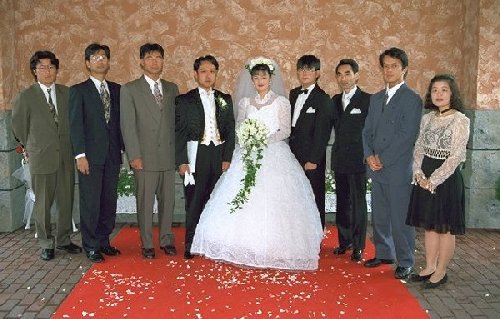 誓約聖歌隊による「アヴェ・マリア」がながれるなか、結婚誓約書にサインしました。牧師先生の結婚宣言・・・私達は結婚しました。 |